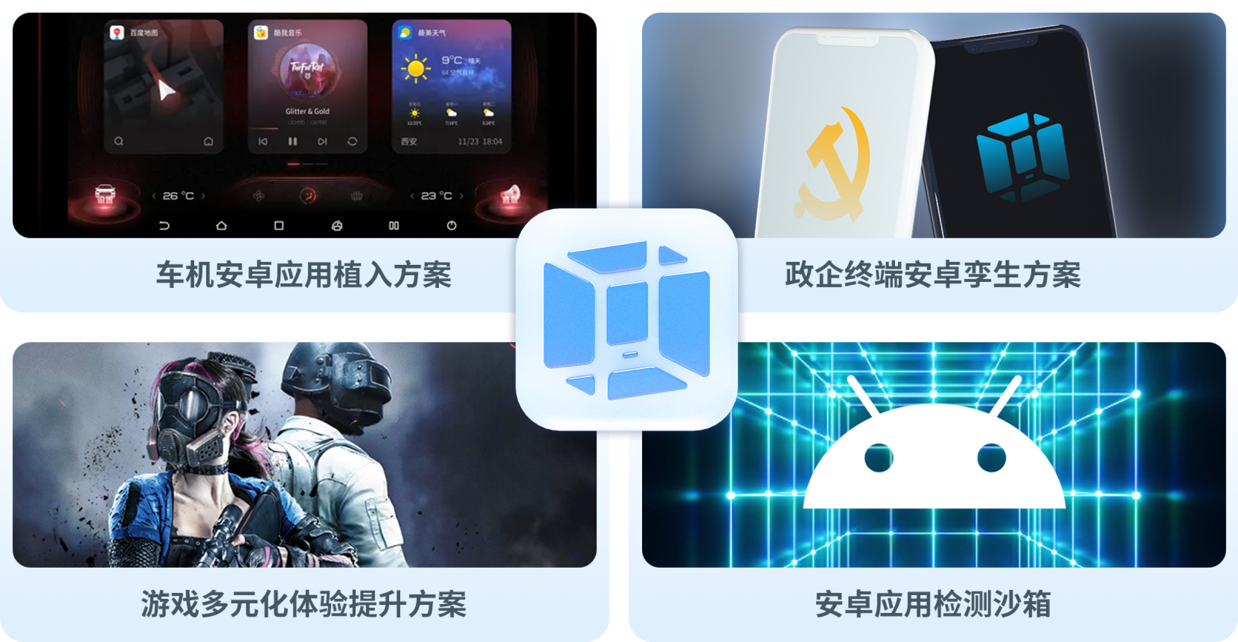 让车载显示屏秒变安卓平板设备,让足不出车,纵享个性化影音配置,为汽车厂商、车机研发机构、车联网服务企业提供成熟的车载设备安卓应用生态植入技术支持。